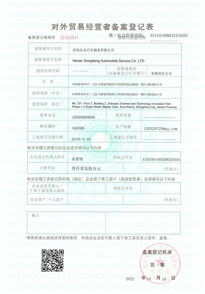 ddongauto.com is subordinate to Henan Dongdong Automobile Service Co., Ltd, which was founded in 2016 and is located in Zhengzhou, Henan Province, China, with a registered capital of 30.5 million yuan.