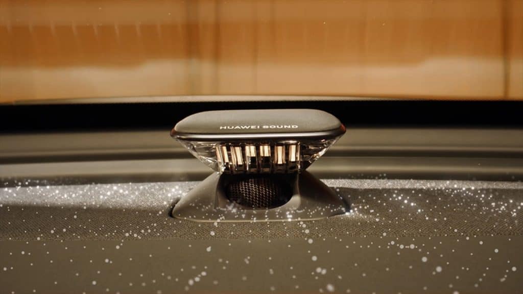 A 15.6-inch Huawei smart display dominates the dashboard. The system allows seamless smartphone integration. Over 50,000 mobile applications are supported.