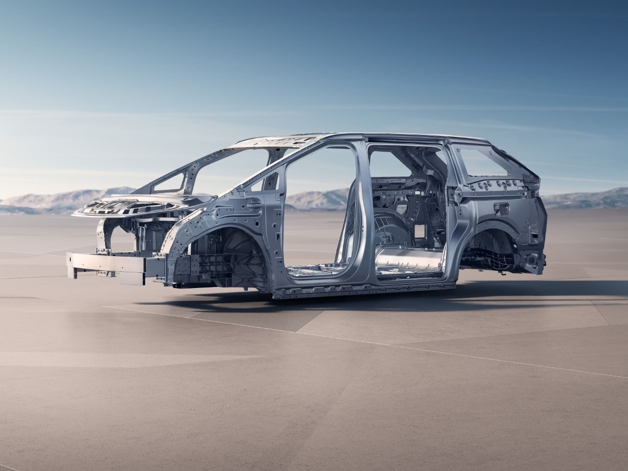 The structure integrates high-strength hot-formed steel and a 10-ton-rated “MagSafe” battery shell.