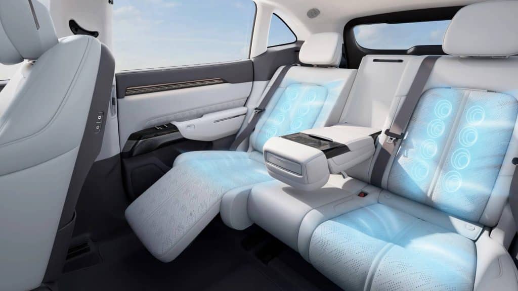 Each rear seat includes a powered leg rest extending up to 355 mm, the longest in its class. These seats recline from 15° to 134°, creating a nearly flat resting position. This flexibility offers exceptional comfort for naps on long trips. With 1187 mm of rear legroom, the Zeekr 7X delivers true lounge-level comfort for every passenger.