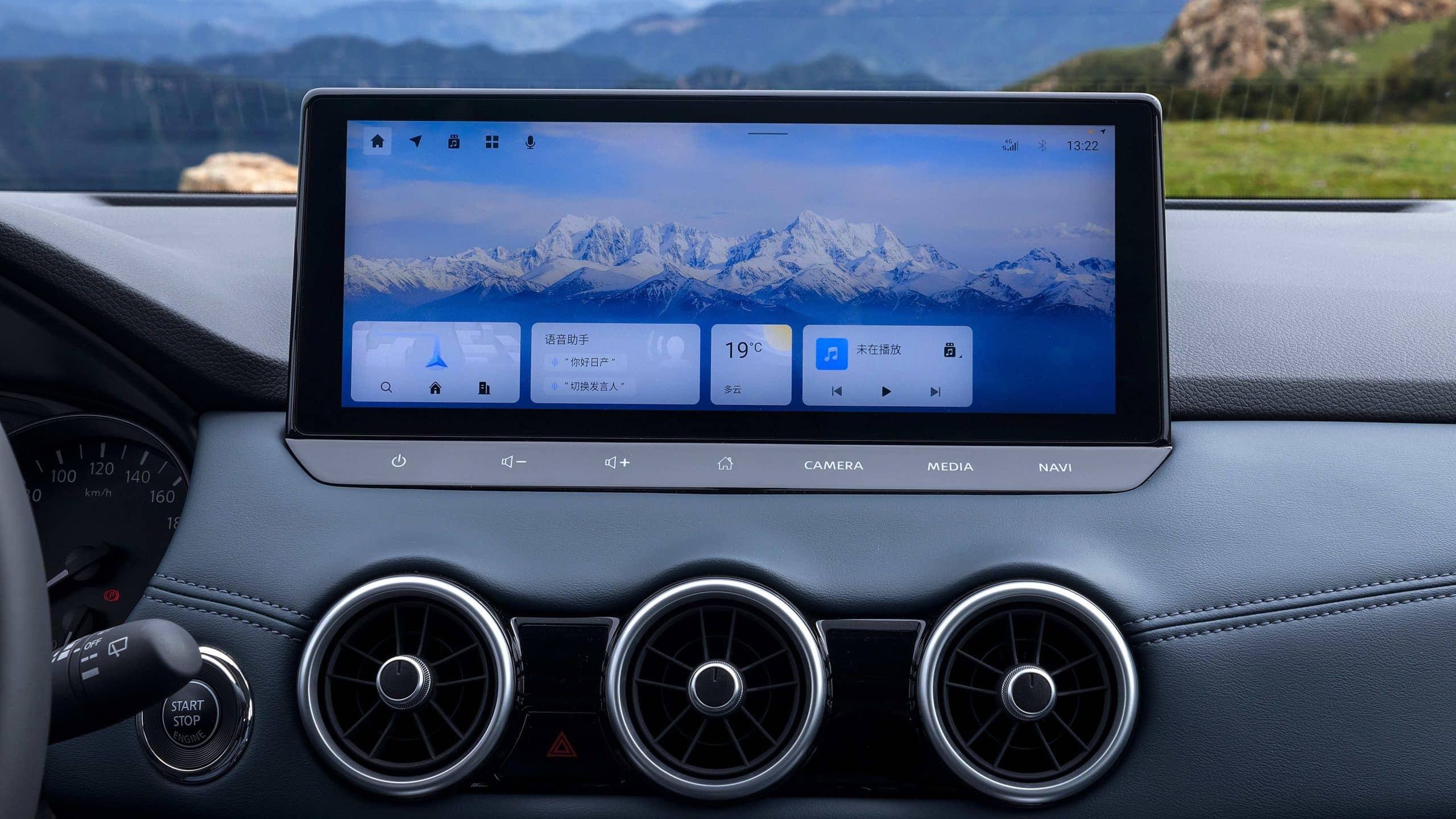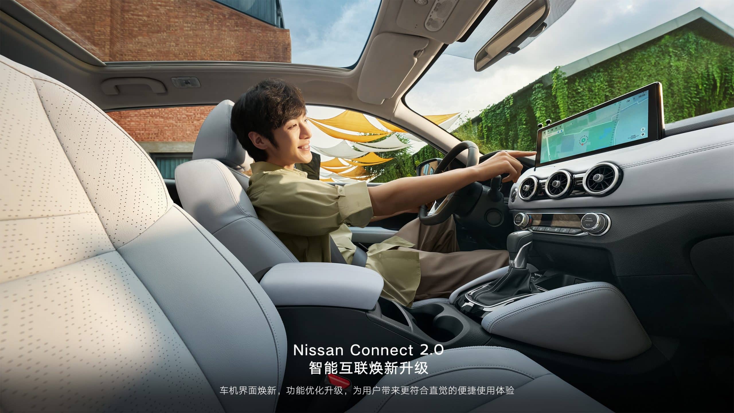 The vehicle is equipped with a 12.3-inch touchscreen supported by the Nissan Connect system.